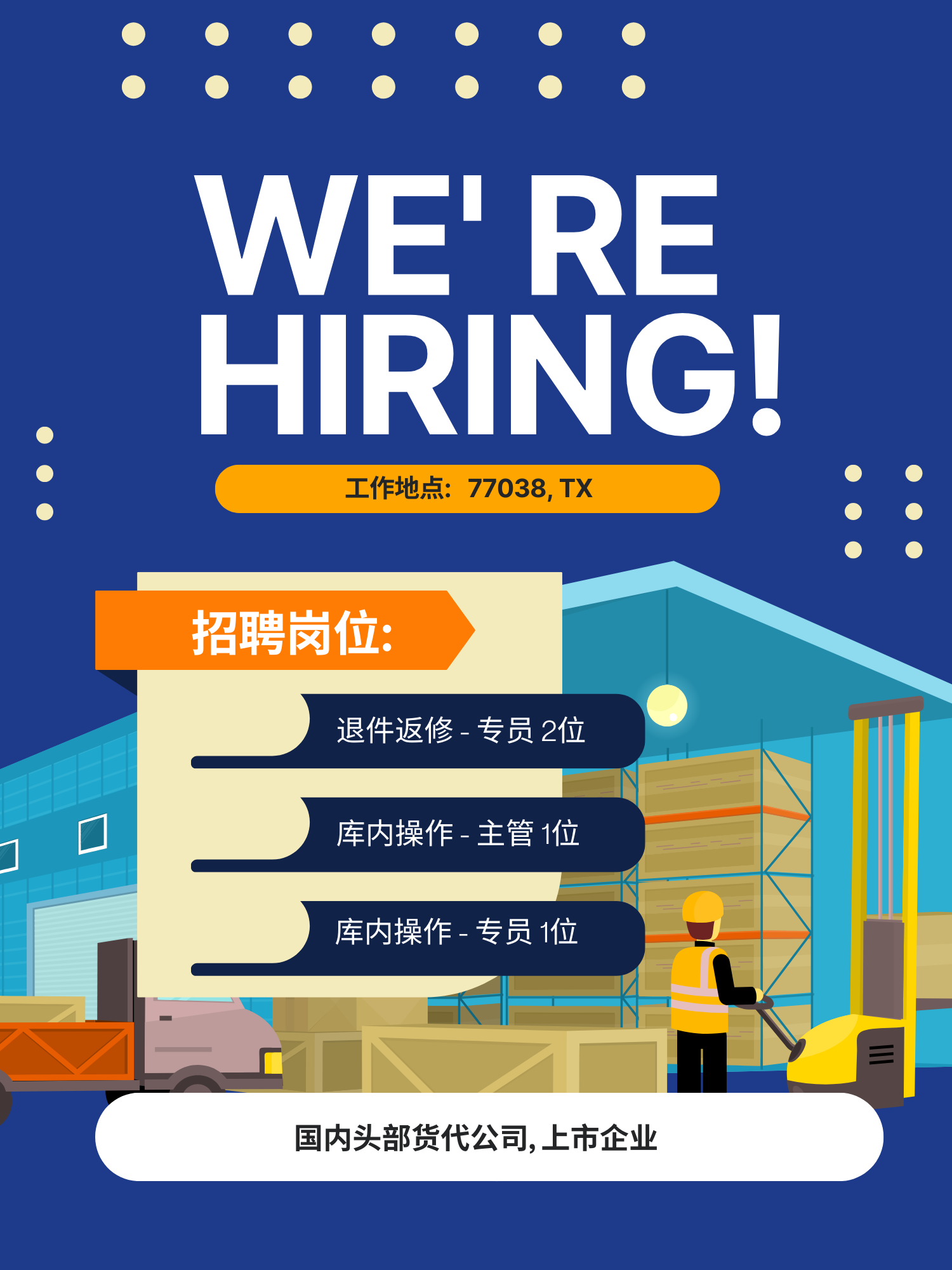 【诚聘】 达拉斯海外仓 仓库经理/现场主管/人事行政 (待遇优,